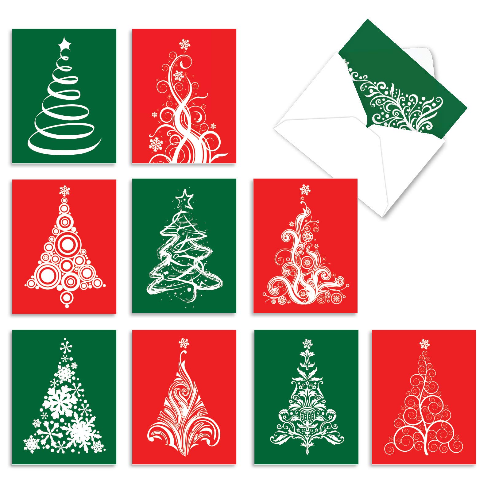 Amazon Com The Best Card Company 10 Blank Christmas Note Cards With Envelopes 4 X 5 12 Inch Fun Assorted Holiday Notecard Set Fanciful Firs M3270 Everything Else